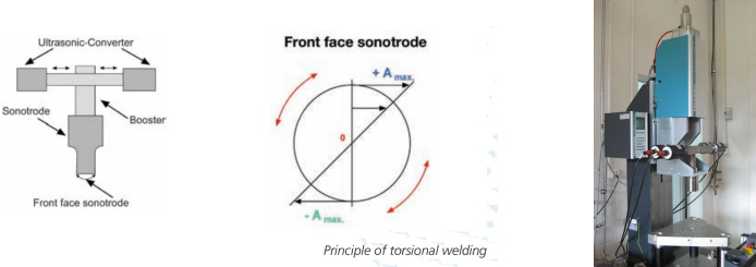 B.工作振動模式:①扭轉振動模式。目前這種模式為瑞士telsonic專有,用于環狀焊接是其特有優勢,telsonic也將扭轉模式應用于線+端子上了。扭轉振動模式的振動系統結構較復雜,故大多數情況下需多個換能器組合。